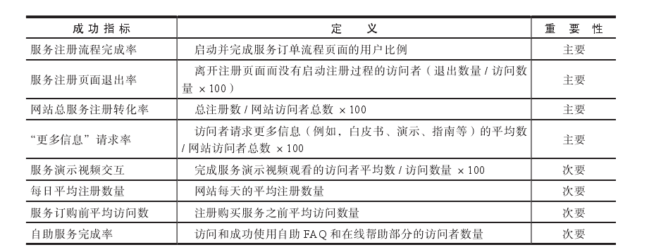 3. 服務(wù)網(wǎng)站成功衡量指標(biāo)