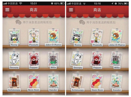 圖1-8是Path3.0版推出的商店功能,網(wǎng)站設(shè)計(jì)者讓用戶可以在里面購(gòu)買喜歡的貼紙。當(dāng)你輕輕晃動(dòng)手機(jī)時(shí),貼紙會(huì)順著你搖晃的方位改變角度,發(fā)現(xiàn)這個(gè)小變化,足以讓人感覺(jué)興奮和驚奇。試問(wèn)使用這樣的產(chǎn)品,你的體驗(yàn)?zāi)懿缓脝?