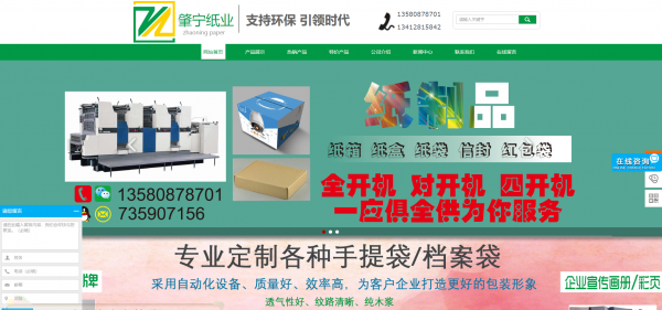 海洋網(wǎng)絡(luò)從2019年開始與東莞市肇寧紙業(yè)有限公司簽約網(wǎng)站建設(shè),幫助東莞市肇寧紙業(yè)有限公司網(wǎng)站設(shè)計(jì)及開發(fā)網(wǎng)站多次網(wǎng)站平臺,此項(xiàng)目為東莞市肇寧紙業(yè)有限公司新版官方網(wǎng)站