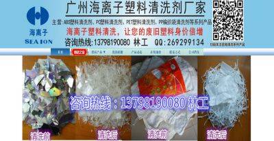廣州海離子塑料有限公司-專業(yè)從事海離子清洗技術研究和生產,產品廣泛用于回收光盤、各種通用塑料和工程塑料的脫漆、脫墨、脫膠(不干膠)脫膜、褪鍍等處理。配套服務包括廢水處理循環(huán)使用,項目可行性研究,工藝裝備技術設備、裝備制造、成套建廠方案,安全評估、環(huán)境保護評價等。 海離子系列產品本身無毒、無味、無害,不燃燒,使用安全,工藝過程無廢氣、無噪音,不污染環(huán)境,可消除回收處理作業(yè)過程的火災和毒害的危險性,實現清潔生產,提高處理效果和效率,降低處理費用,大幅提高企業(yè)利潤收益。 海離子具備月再生塑料2000噸-5000噸的生產設備,水處理設計總體技術能力。與此同時,不斷創(chuàng)新塑料回收科技,生產全球領先水平的再生塑料清洗技術產品。