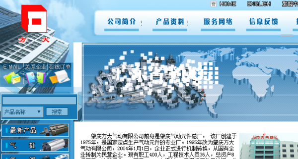 肇慶方大氣動有限公司前身是肇慶氣動元件總廠, 該廠創(chuàng)建于1975年,是國家定點生產氣動元件的專業(yè)廠。1995年改為肇慶方大氣動有限公司,2004年1月1日,企業(yè)正式進行機制轉換,從國有企業(yè)轉制為民營企業(yè)?,F有職工400人,工程技術人員36人,總資產8仟萬元,注冊資金5610萬元。1999年通過ISO質量保證體系認證,公司主營氣缸、氣閥、氣源三大件及成套設備。產品多次被評為“省優(yōu)”、“部優(yōu)”、“名優(yōu)”產品,其中,“方大”牌氣動元件被評為廣東省名牌產品。方大公司是全國氣動行業(yè)中產品品種最齊全、規(guī)格最多的氣動元件專業(yè)生產公司,多年來公司各項主要經濟指標在國內氣動行業(yè)中處于前列,在國內具有重要的影響力。