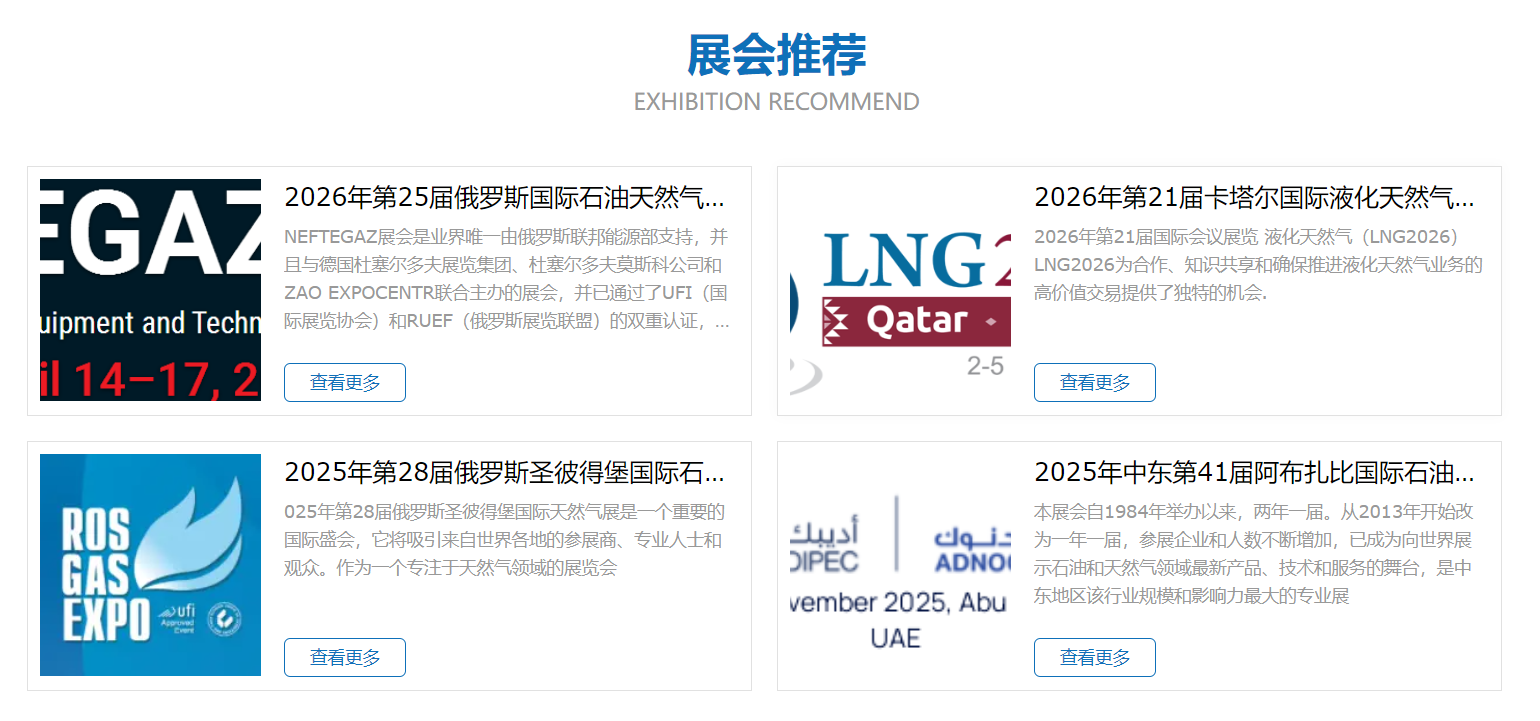 專注于石油石化天然氣、管道管材泵閥組件國內(nèi)外展覽、會議、商旅定制、展臺設計搭建、展品運輸、展會廣告于一體的專業(yè)展覽公司。為中國企業(yè)戶開拓國際市場提供著高效、優(yōu)質(zhì)、全方位的會展服務。