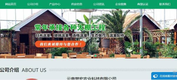 云南楚*農(nóng)業(yè)科技有限公司選用我司企業(yè)園藝設(shè)備行業(yè)的網(wǎng)站優(yōu)化產(chǎn)品,其SEO關(guān)鍵詞有云南溫室大棚,云南鋼架溫室大棚,云南溫室大棚設(shè)計(jì),云南溫室大棚工程,云南溫室大棚造價(jià),云南多肉大棚,云南楚*農(nóng)業(yè)科技有限公司。其特點(diǎn)是用很合適的展示方式、展示效果、站點(diǎn)框架,把客戶(hù)及其用戶(hù)很關(guān)心的問(wèn)題突出表現(xiàn);并以簡(jiǎn)潔明朗的設(shè)計(jì)風(fēng)格,清晰展現(xiàn)公司水平實(shí)力,確保一秒抓住目標(biāo)用戶(hù)眼球,給用戶(hù)留下良好的第一印象。云南楚*農(nóng)業(yè)科技有限公司成立于2014年,是經(jīng)昆明市市場(chǎng)監(jiān)督管理局審核的有資質(zhì)的公司,其統(tǒng)一社會(huì)信用代碼:915301213162***1G 。公司地址:云南省昆明市呈貢區(qū)斗南小學(xué)前行50米。