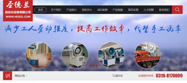 邯鄲市圣*蘭自動(dòng)化設(shè)備有限公司選用我司企業(yè)自動(dòng)化設(shè)備行業(yè)的網(wǎng)站優(yōu)化產(chǎn)品,其SEO關(guān)鍵詞有 噴霧機(jī)、平板式工地洗輪機(jī)、塔吊噴淋設(shè)備、邯鄲圣德蘭、圣德蘭、圣德蘭洗車設(shè)備。其特點(diǎn)是用很合適的展示方式、展示效果、站點(diǎn)框架,把客戶及其用戶很關(guān)心的問題突出表現(xiàn);并以簡潔明朗的設(shè)計(jì)風(fēng)格,清晰展現(xiàn)公司水平實(shí)力,確保一秒抓住目標(biāo)用戶眼球,給用戶留下良好的第一印象。邯鄲市圣*蘭自動(dòng)化設(shè)備有限公司成立于2012年,是經(jīng)邯鄲市市場監(jiān)督管理局審核的有資質(zhì)的公司,其統(tǒng)一社會(huì)信用代碼:911304215**569314H 。公司地址:河北省邯鄲市309國道代召開發(fā)區(qū)。