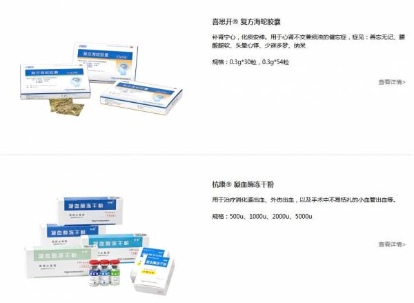 公司現(xiàn)擁有神經(jīng)系統(tǒng)用藥、止血用藥、抗感染用藥等藥品批準(zhǔn)文號共30余個,其中:喜恩開牌“復(fù)方海蛇膠囊”系國內(nèi)首只海洋生物促智藥,國家中藥獨家保護品種,榮獲國家重點新產(chǎn)品,同時被列入國家高技術(shù)產(chǎn)業(yè)化示范工程項目;其他產(chǎn)品如“凝血酶凍干粉”、“濃替硝唑含漱液”等均列入國家醫(yī)保目錄,在國內(nèi)同類產(chǎn)品中具有較高的知名度和認(rèn)知度。