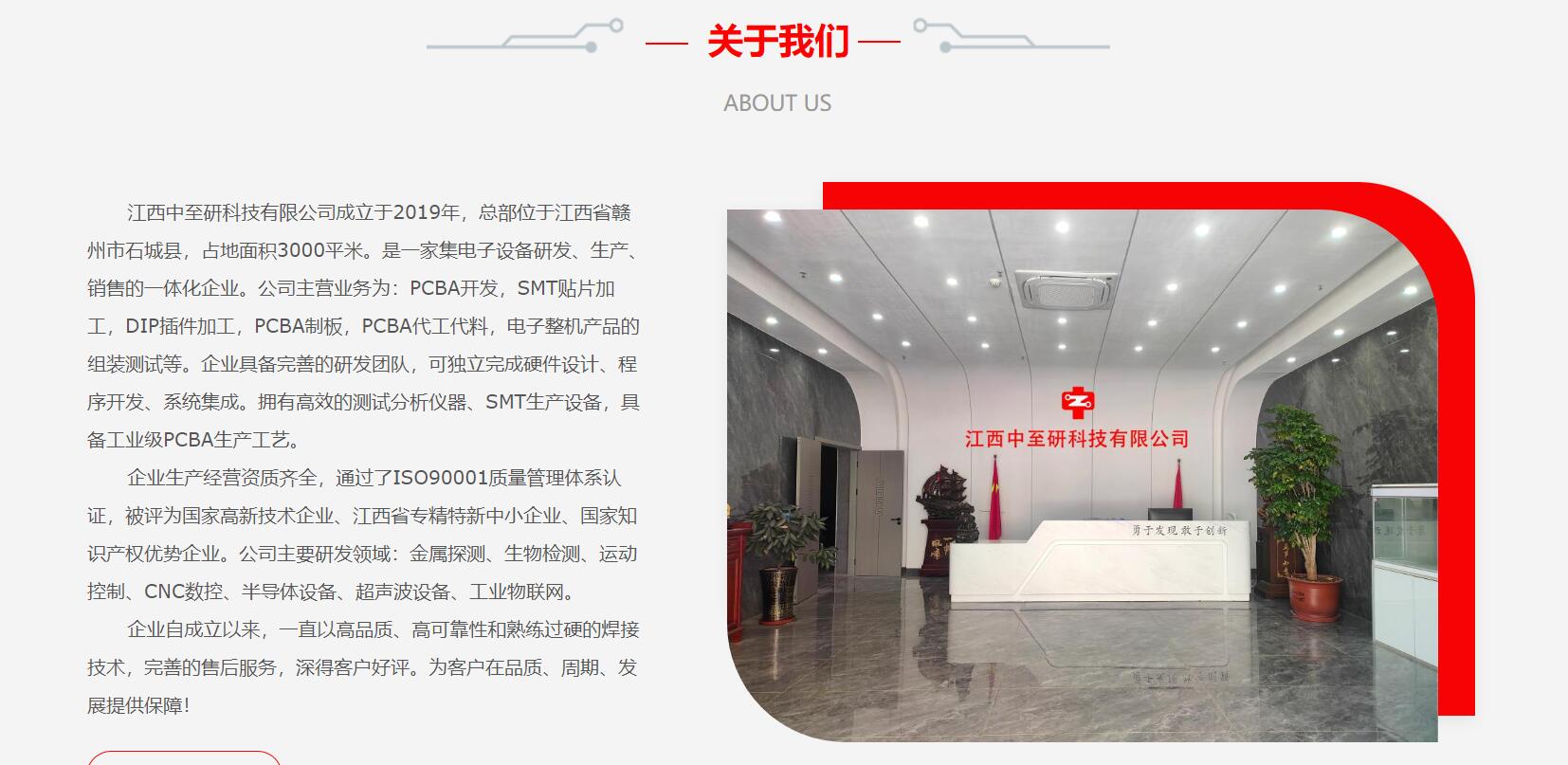 江西中至研科技有限公司成立于2019年,總部位于江西省贛州市石城縣,占地面積3000平米。是一家集電子設備研發(fā)、生產(chǎn)、銷售的一體化企業(yè)。公司主營業(yè)務為:PCBA開發(fā),SMT貼片加工,DIP插件加工,PCBA制板,PCBA代工代料,電子整機產(chǎn)品的組裝測試等。企業(yè)具備完善的研發(fā)團隊,可獨立完成硬件設計、程序開發(fā)、系統(tǒng)集成。擁有高效的測試分析儀器、SMT生產(chǎn)設備,具備工業(yè)級PCBA生產(chǎn)工藝。