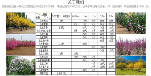 我公司目前是全國(guó)**的玫瑰紅紫薇種植地之一,公司有苗圃約5000余畝,主要經(jīng)營(yíng)叢生、獨(dú)桿、高桿以及造型玫瑰紅紫薇及少量紅火箭、紅火球紫薇等不同類型及規(guī)格的苗木。主要產(chǎn)品有叢生玫瑰紅紫薇、叢生石榴、叢生木槿、叢生紫荊、叢生丁香、叢生臘梅、叢生榆葉梅、叢生黃刺玫、叢生結(jié)香、叢生金銀木、叢生紅瑞木、叢生連翹、叢生貼梗海棠、叢生紅梅、叢生美人梅、叢生接骨木等花灌木,主要規(guī)格為冠幅1.5m、1.8m的工程用苗和苗圃規(guī)劃用苗。公司還提供2018年叢生類花灌木的較新價(jià)格。