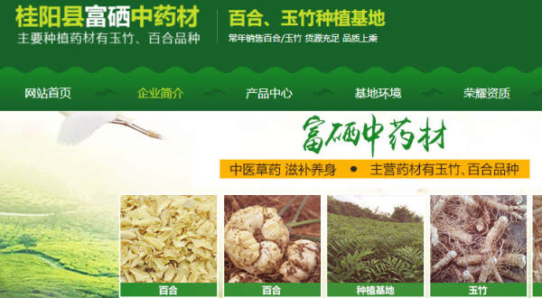 桂陽縣富硒中藥材有限公司位于歷史文化悠久、風(fēng)景宜人、 氣候溫潤的湖南省桂陽縣。公司種植面積達(dá)到1000余畝,主要種植藥材有玉竹、百合品種。其中玉竹種植面積達(dá)800余畝,三年一產(chǎn)一收,計(jì)能產(chǎn)鮮貨約700萬斤,通過天然日曬干貨約有200萬斤。百合種植面積200余畝,一年一產(chǎn)一收,計(jì)約產(chǎn)鮮貨 100萬斤,通過天然日曬約為30萬斤。 2013年11月被桂陽人民政府評(píng)為桂陽縣農(nóng)業(yè)產(chǎn)業(yè)化龍頭企業(yè)。桂陽縣富硒中藥材有限公司以合作社及家庭模式共存,始終秉承“誠信,雙贏,綠色,生態(tài)”的發(fā)展理念。堅(jiān)持以科 技為依托,以市場(chǎng)為導(dǎo)向,產(chǎn)學(xué)研相結(jié)合,按照生態(tài)化、資源化、無害化的原則進(jìn)行生態(tài)藥材種植和林下生態(tài)養(yǎng)殖,以追求“綠色原生態(tài)”中藥材 為目標(biāo),建成綠色生態(tài)種植和休閑觀光一體,覆蓋研發(fā),種植,加工, 銷售全產(chǎn)業(yè)鏈的藥材 公司在經(jīng)營上貫徹“人本、誠信、為民”的服務(wù)宗旨,奉行“規(guī)范管理、質(zhì)量為上、信譽(yù)至上、共創(chuàng)雙贏”的企業(yè)理念。